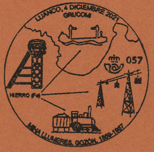 de Lena muy cerca de Muñón Cimero. Matasellos homenaje a la mina de hierro de Llumeres, en Luanco en diciembre de 2021